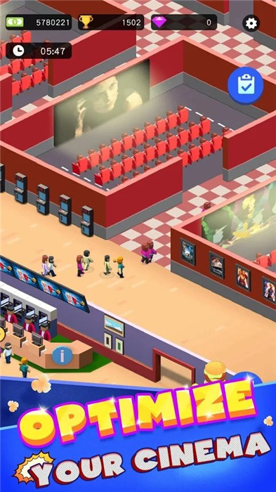 4、随时解锁新的电影院,播放更精彩的电影,吸引更多顾客。